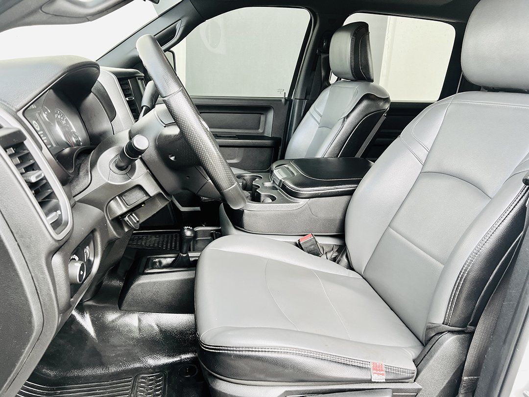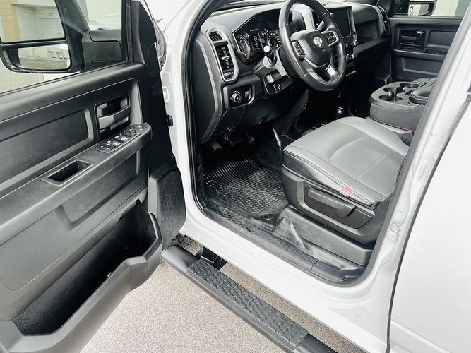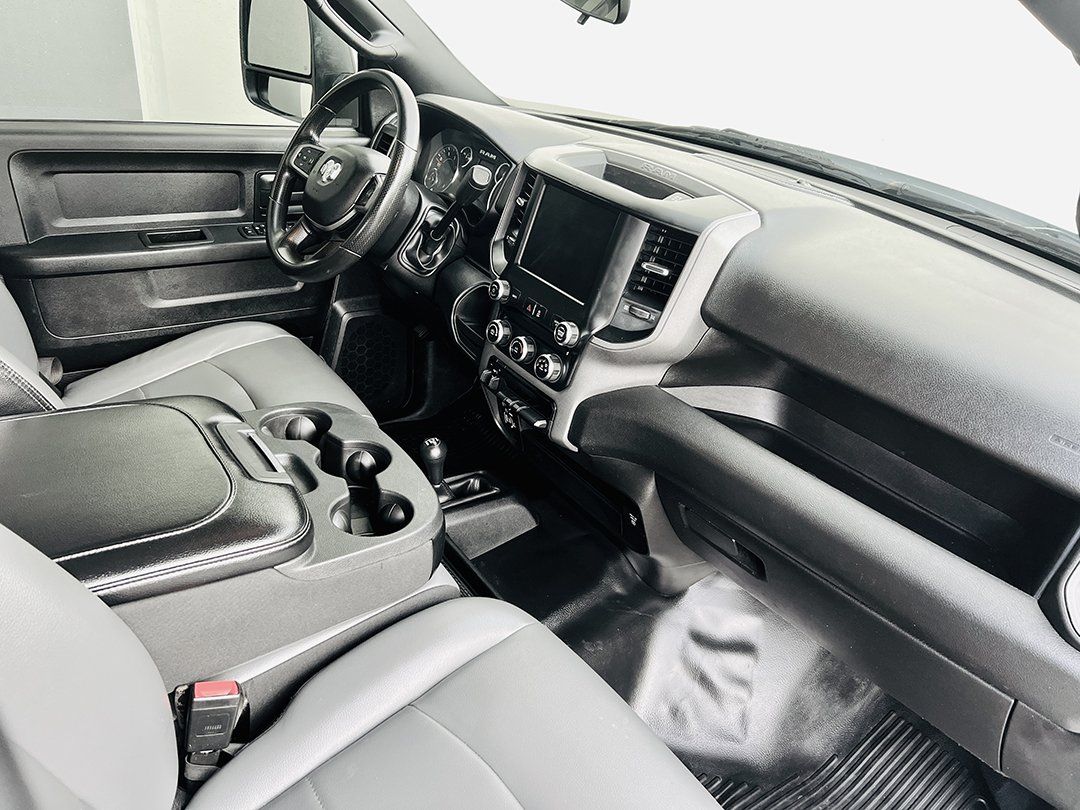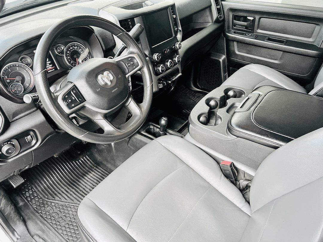 Inside, modern convenience meets rugged utility. The advanced Uconnect 5 Headunit System with Apple CarPlay/Android Auto keeps you connected on the job, while the intuitive layout makes day-to-day operation simple and efficient. Dark tinted windows help with the ride to/from the job site. Clean Black Vinyl flooring completes the look. Everything about this truck is designed to support workers who need reliability from their equipment—every single day.