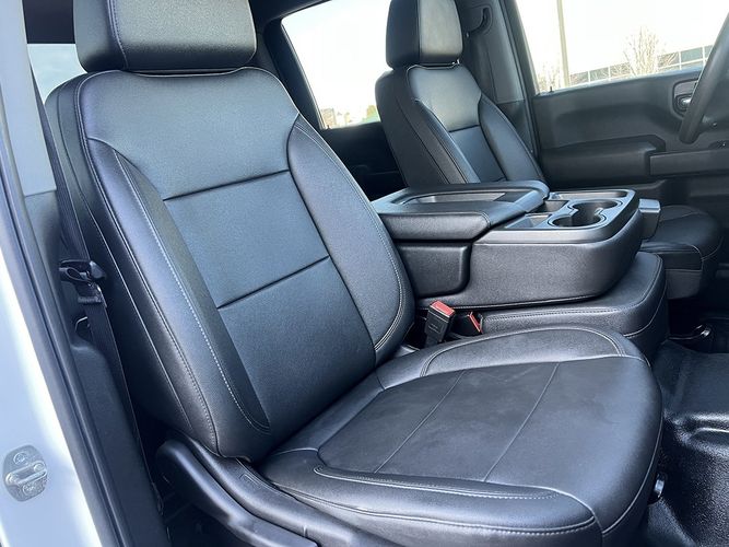Inside the Crew Cab, the Silverado offers practical comfort with Leather front split-bench seating, a 40/20/40 configuration, and a rear folding bench that balances passenger space with interior storage. The Chevrolet Infotainment System includes Bluetooth connectivity, Apple CarPlay, and Android Auto, along with USB ports, steering-wheel controls, and OnStar capability, keeping the cabin functional and easy to live with day to day.