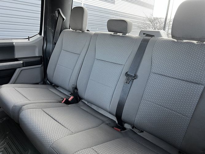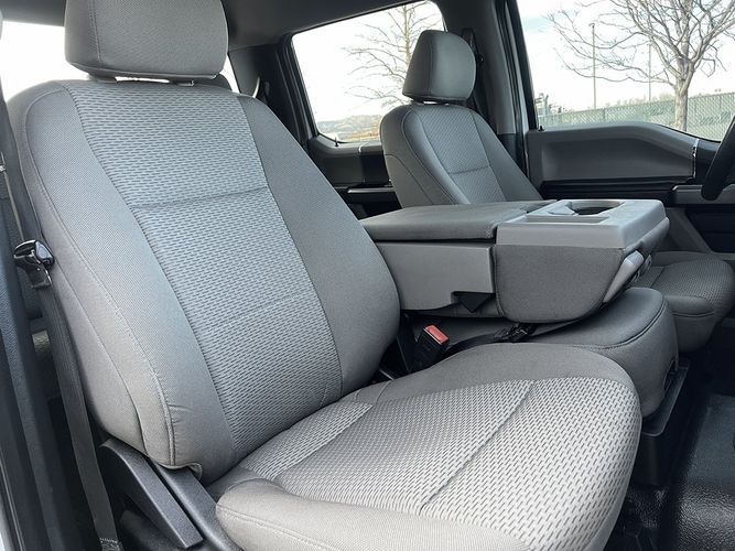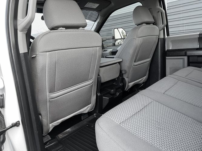 Inside, the XLT cabin is designed for real workdays. SYNC 3 with factory navigation, FordPass Connect, remote start, reverse sensing system, upfitter switches, and the power equipment group are all present. Durable vinyl flooring and a clean 40/20/40 cloth bench keep the interior practical, comfortable, and easy to maintain.